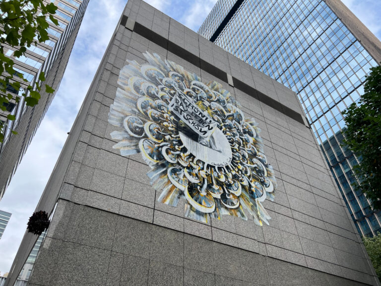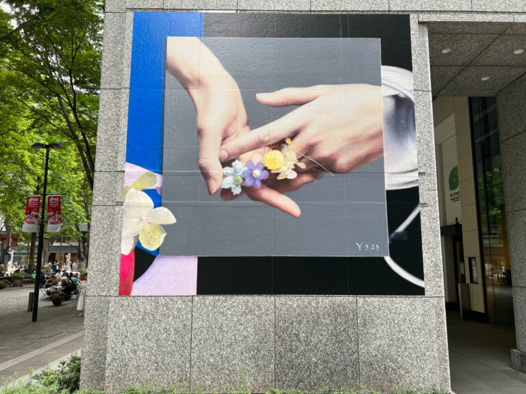 大丸有エリアにおいても、竹やロープなど自然素材や、街で拾い集めた素材を用いた市民参加型のアートプロジェクト「スローアートコレクティブ」が実施されているほか、シャーロット・デ・コックが大手町ファーストスクエアの南側に描いた巨大壁画の展示などが行われています。
