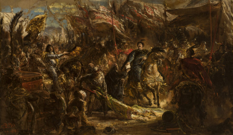 ヤン・マテイコ《1683年、ウィーンでの対トルコ軍勝利伝達の教皇宛書簡を使者デンホフに手渡すヤン3世ソビェスキ》 1880年 油彩/カンヴァス クラクフ国立博物館蔵