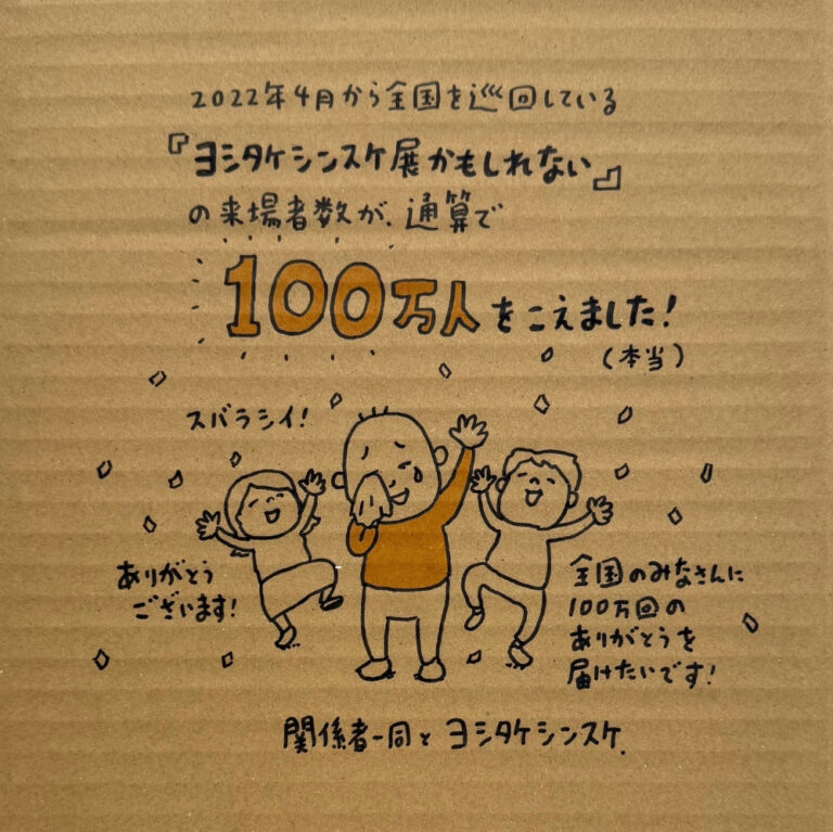 記念すべき100万人達成を受けて、展覧会の公式サイトは8月末まで期間限定で「100万人達成感謝バージョン」として特別仕様に変更されています。また、公式SNS(Instagram、X、TikTok)では、展覧会への感謝の気持ちとこれまでの巡回の思い出が詰まった「ヨシタケさんからの感謝メッセージ動画」が公開され、ファンの間で話題となっています。