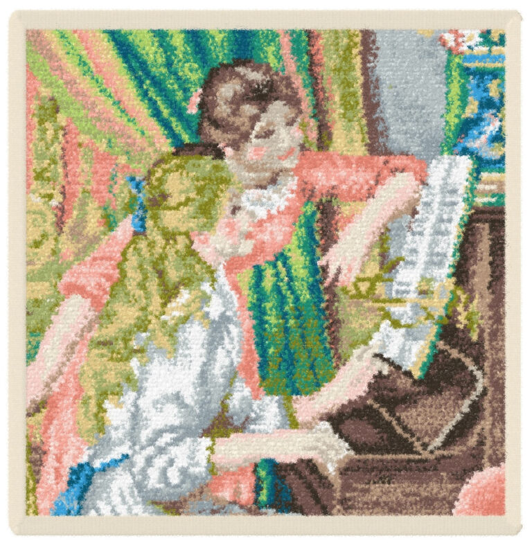 ドイツの伝統工芸シュニール織で知られる高級ブランド「FEILER(フェイラー)」とのコラボレーションによるハンカチ付きチケットは、ルノワール《ピアノを弾く少女たち》をデザインした本展だけの特別なアイテムです。