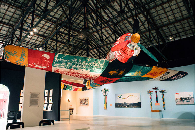 北澤潤のプロジェクトは、かつて日本軍のジャワ侵攻に使われ、のちにインドネシア独立戦争で再利用された戦闘機を、現地の凧職人たちとともに蘇らせる試みです。歴史の痕跡をダイナミックに掘り起こしながら、過去と現在、そして両国のあいだに横たわる葛藤と可能性を浮かび上がらせます。