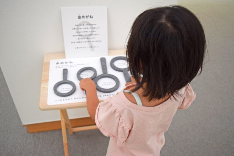 展示をさらに楽しみたい時におすすめなのが、子どもから大人まで自由に使用できる「虫めがね」です。作品のお気に入りポイントを見つけるツールで、一部を切り取って見ることで、細かな表現に注目できます。