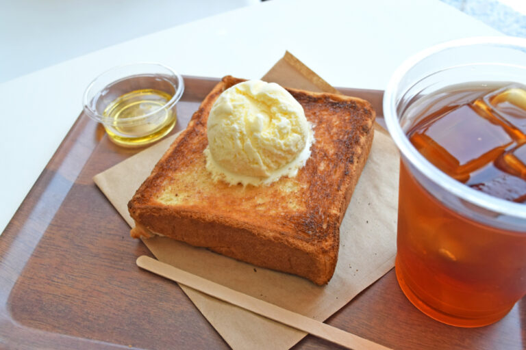 こちらは、筆者が頼んだハニートースト。大きなバニラアイスの上からはちみつをかけていただきます。香ばしさと甘味のバランスが絶妙です!