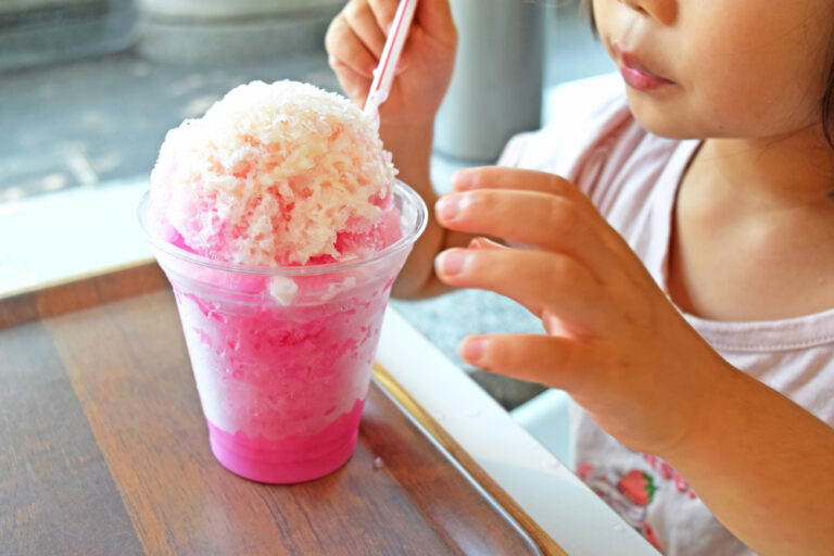 いちごのかき氷(税込350円)。練乳もトッピング(プラス税込100円)しました。