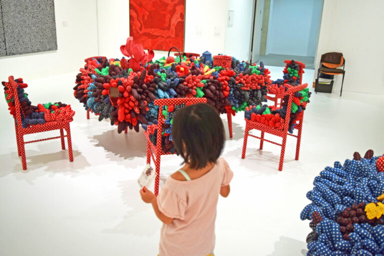 企画展「未来/追想 千葉市美術館と現代美術」を鑑賞している様子。中央の作品は、草間彌生氏の《最後の晩餐》(1981年)。