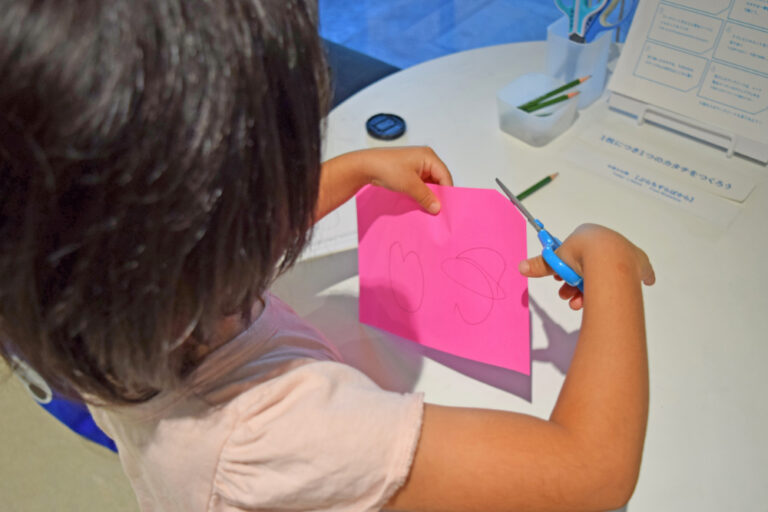 筆者の娘も、さっそくワークショップに挑戦。まずは、アーティストの池田光宏さんから出されたお題(言葉)をもとに、イメージしたカタチを考えます。