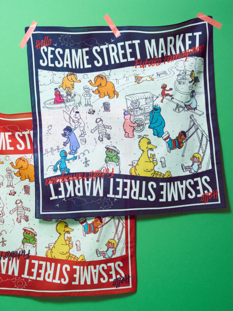 オープンを記念して、二子玉川ならではの自然豊かな街並みからインスパイアされた、玉川店限定アイテムが登場します。緑や水辺の景色が広がる公園で、セサミストリートの仲間たちがにぎやかに集う様子をモチーフにしたデザインが目を惹きます。