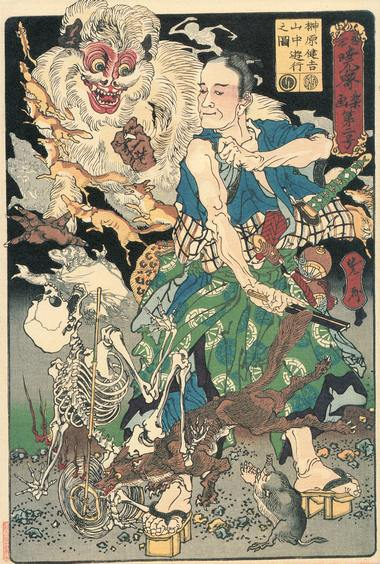 河鍋暁斎『応需暁斎楽画 第二号 榊原健吉山中遊行之図』, Public domain, via Wikimedia Commons.